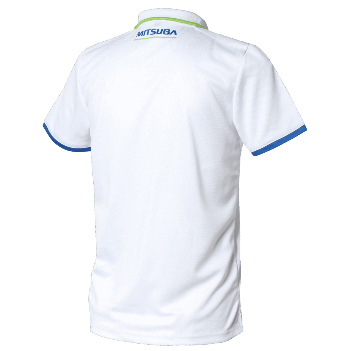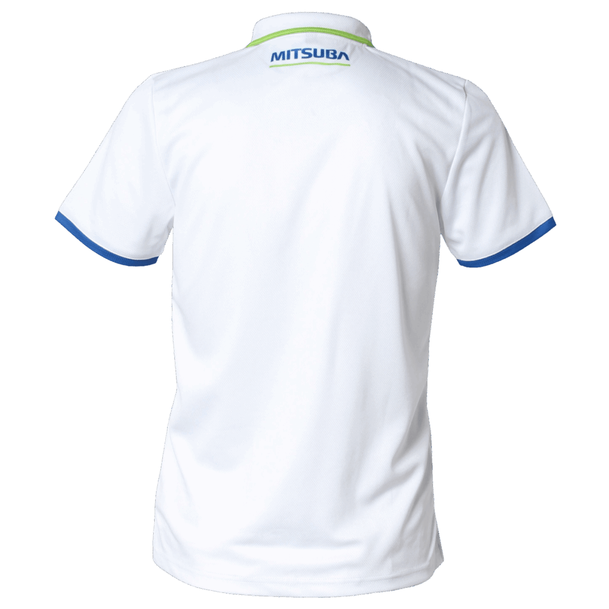 シンプルな企業様のポロシャツです。ロゴに使用されている色をそれぞれ襟と袖口にラインして入れ、シンプルながらも工夫が施されたデザインになっています。