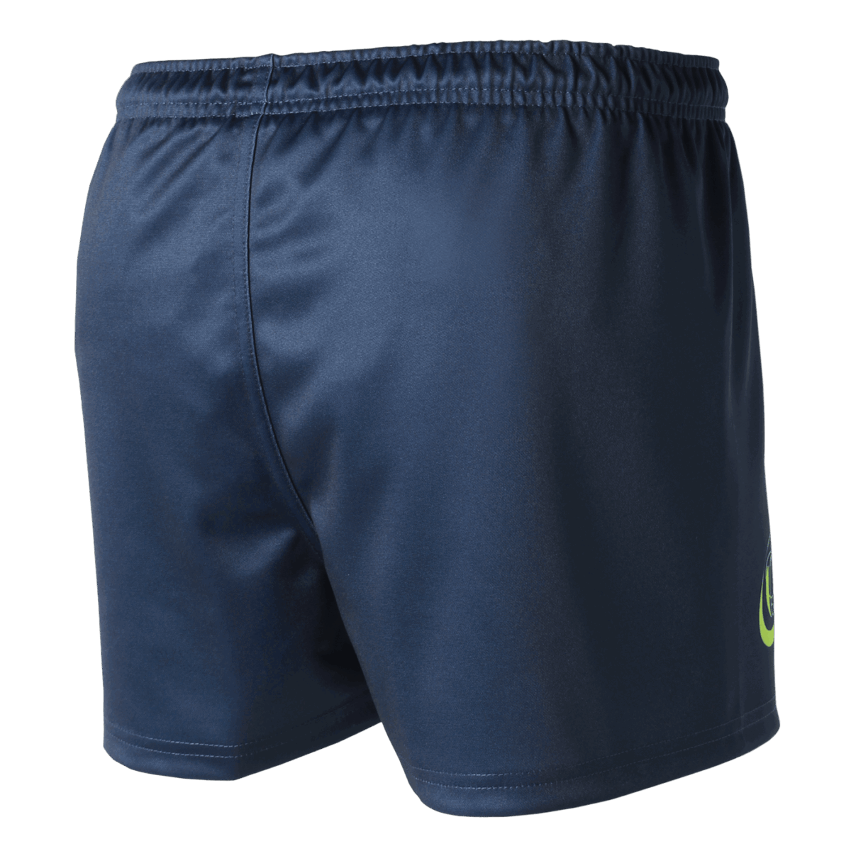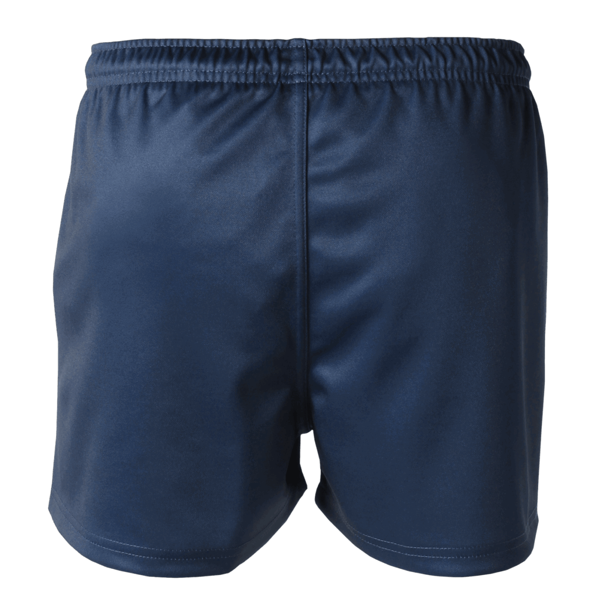 ジャージの色に合わせた紺色に、右腿の前柄にクラブロゴを追加したラグビーショーツを製作いたしました。