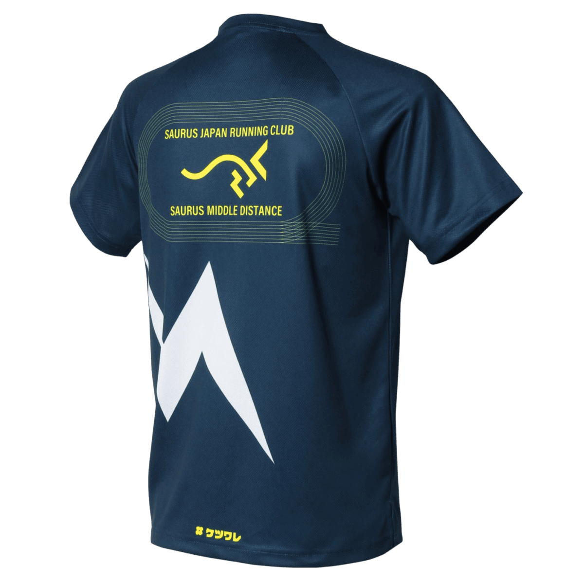 FS-476のシングレットを元にしたウォームアップTシャツのデザインです。ウォームアップTシャツに転用するにあたり、背面の陸上トラックのデザインと背面の稲妻を上部に上げてバランスを取っています。