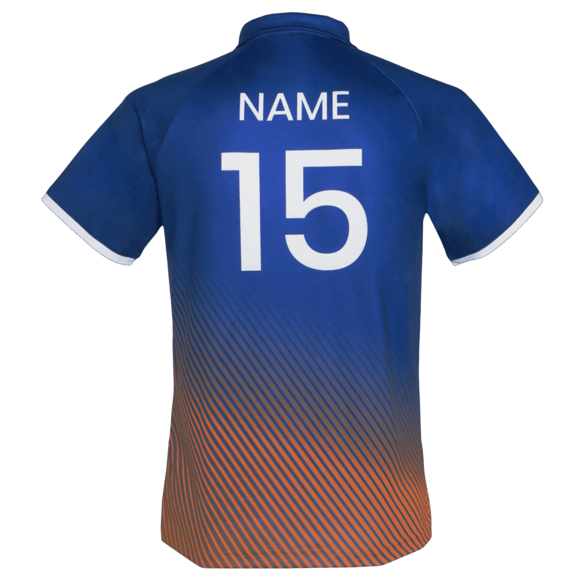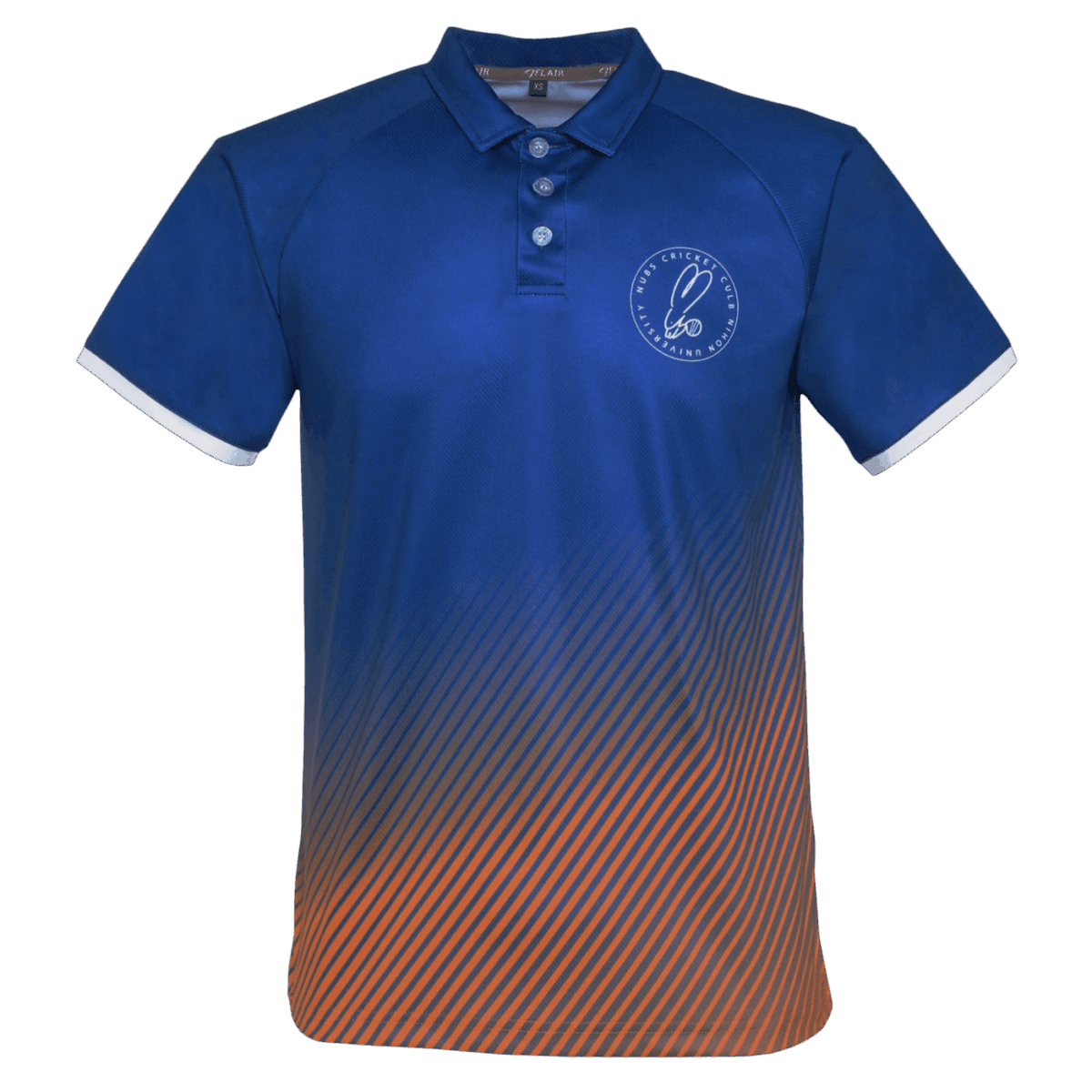 裾部分にラインを組み合わせたグラデーションを斜めにかけたクリケットシャツです。左胸のロゴのベースは単色にすることでロゴが目立つ仕様になっています。